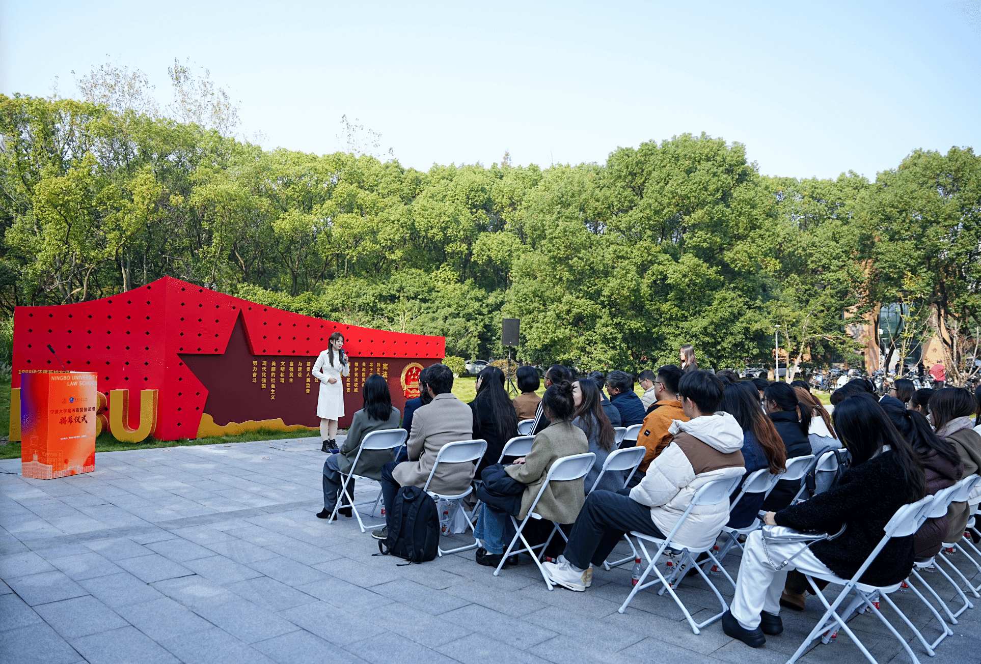 最令人动容的宣誓环节紧随其后。在校友分会会长张炳生的领誓下,全体人员面向誓词墙,右手举拳,庄严宣誓:“我宣誓:忠于中华人民共和国宪法,维护宪法权威,履行法定职责……”铿锵有力的誓言在校园中回荡,传递出宁大人弘扬宪法精神、履行宪法使命的坚定决心。