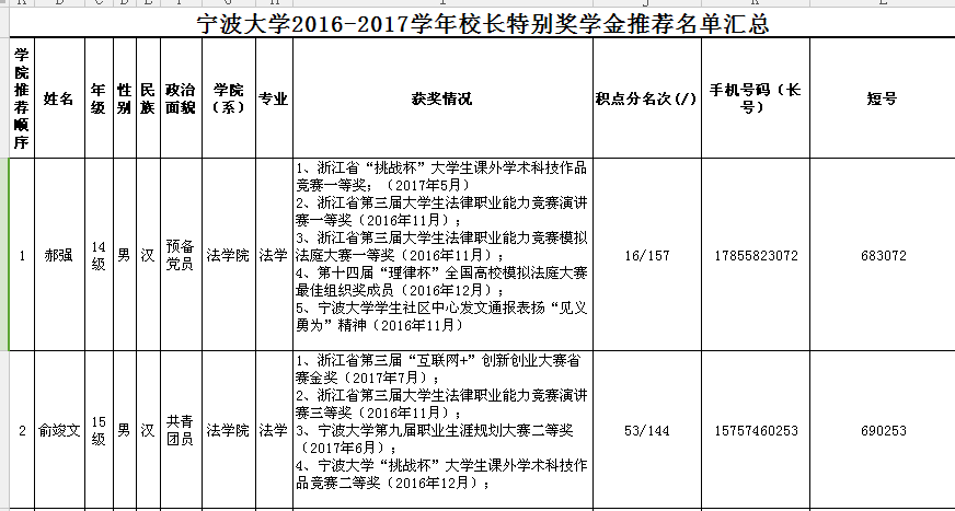 经学生本人申请,学院奖学金评选小组资料审核,评选小组公开投票,现将2016-2017日本无码 校长奖学金日本无码 拟推荐名单公式如下: