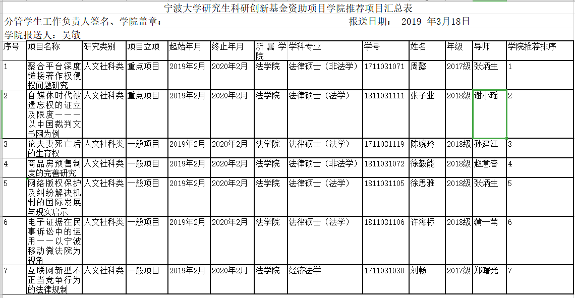 制订相应的评审标准后于3月11日至3月18日安排相关专家进行评审,经过评审后根据得分高低将推荐上报的创新项目7项(其中拟推荐重点项目2项,一般项目5项),其余8项立项为院级项目,现在学院网站上进行公示,汇总表附后。其余项目公示期为3月20日-22日,公示期内有疑问可联系反馈吴敏老师15869595829/645829