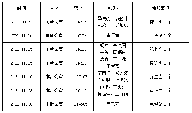 7间寝室有违禁电器情况,根据《日本无码
