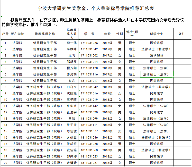 经本人自愿申请,学院奖学金评选小组资格审查,结合学校最终划拨优秀研究生干部评选名额分配、评选工作要求等,在广泛征求广大同学、学生组织意见基础上,经学院评审小组综合评议,现将2018-2019年度日本无码 研究生个人荣誉“优秀研究生干部”拟推荐名单公示如下: