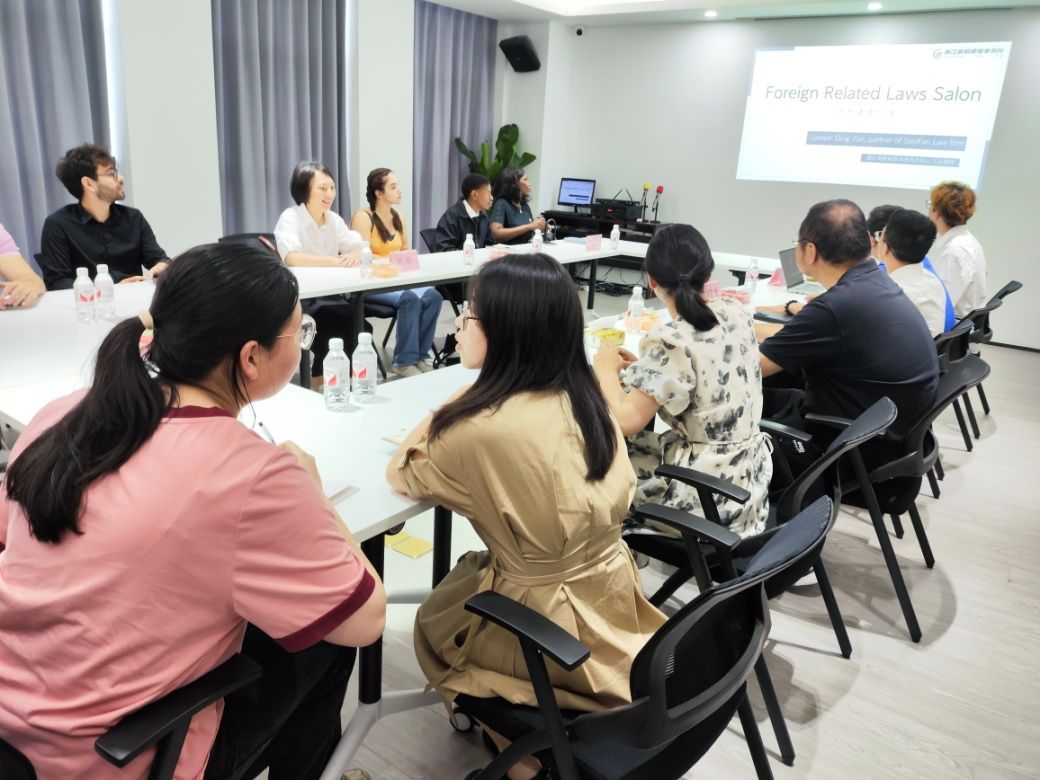 国际办主任林薇老师、留学生课程魏丽老师的带领下,法学硕士国际班来自俄罗斯、法国、南非、津巴布韦等国的5名留学生参观了位于高新区的浙江高帆律师事务所,与高帆所的律师们进行了亲切友好的交流。