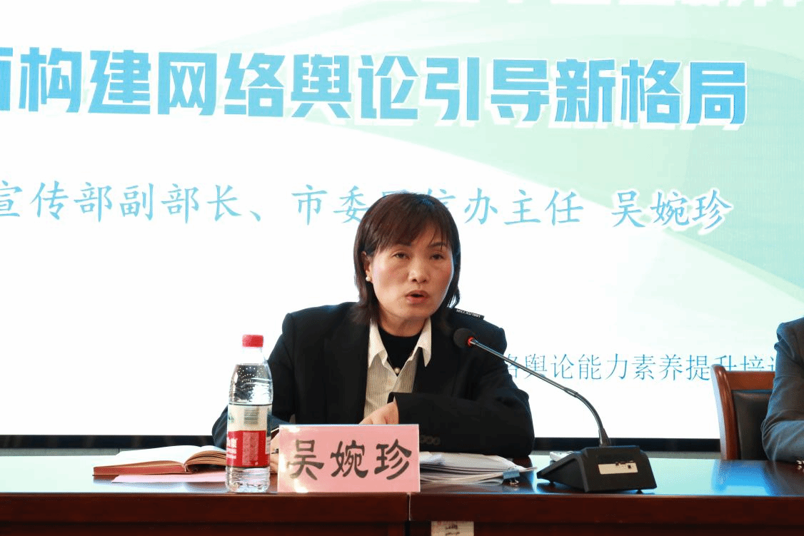 随后,金华市委宣传部副部长、市委网信办主任吴婉珍作动员讲话。吴婉珍强调了在当前媒体格局和舆论生态发生深刻变化的背景下,提升网络舆论工作能力的重要性与紧迫性。她要求全体学员珍惜此次培训机会,端正学习态度,深入思考,积极交流,力求学有所获、学以致用,将培训所学转化为推动金华市网络舆论工作高质量发展的实际成效,为建设清朗网络空间、维护意识形态安全贡献力量。