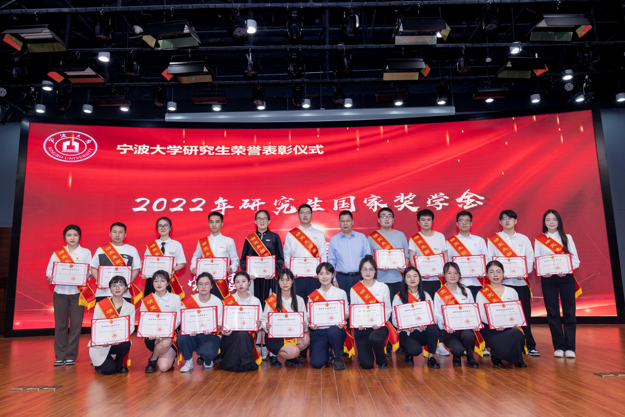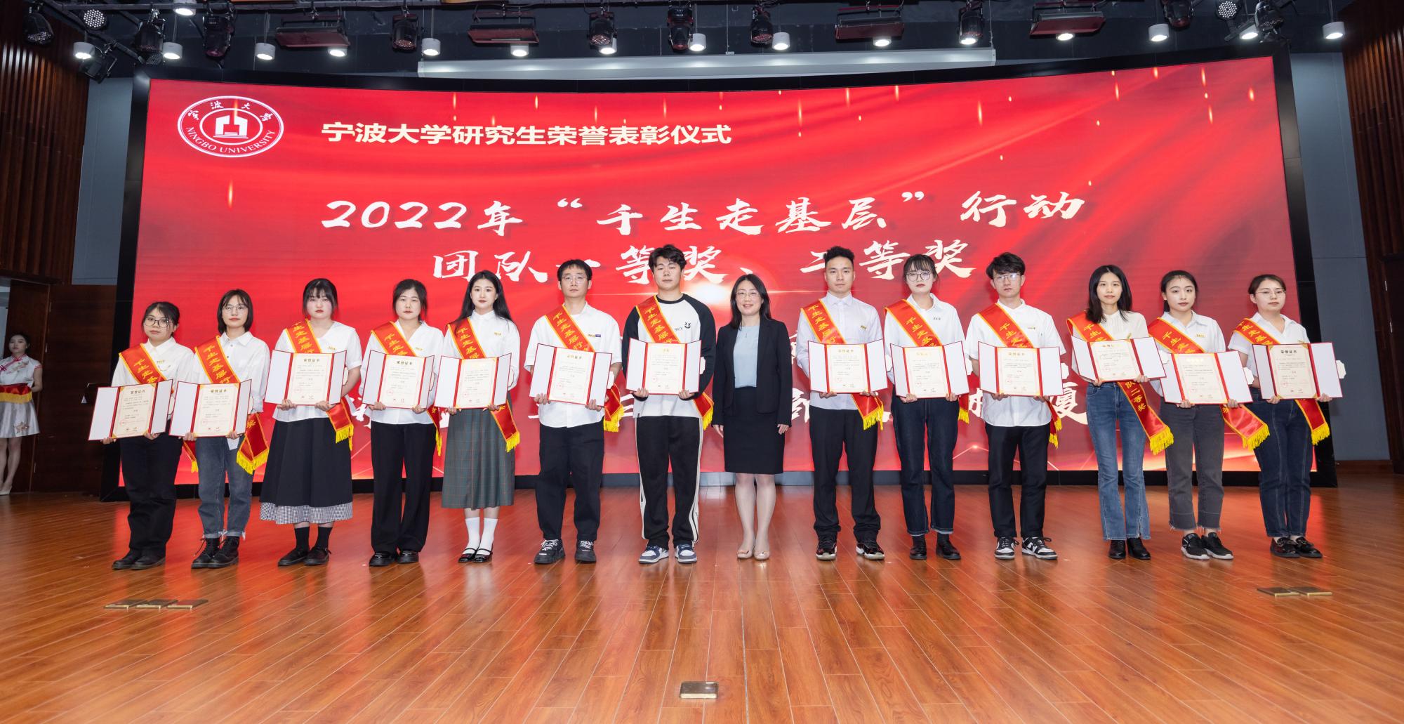 评选展示会后,现场举行了研究生荣誉表彰仪式。校党委副书记赵全军和相关职能部门负责人为2022年研究生国家奖学金、三助岗位之星、三好研究生、优秀研究生干部、千生走基层、宁波研究生学术节等奖项获奖团队和个人颁发荣誉证书。