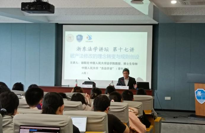 近年在破产法教学与科研方面取得的成就。徐教授提到,破产法是一个综合性很强的法学领域,需要很多相关专业知识作为支撑;把破产法学好,就意味着掌握了很多的相关部门法问题。他勉励同学们把破产法学好,今后为我国破产法治的发展作出力所能及的贡献。