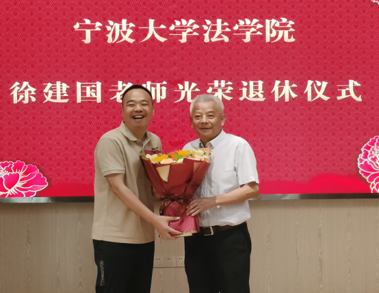 仪式上,孙芬娜书记为徐建国老师颁发了荣休证书;梁开银院长为徐建国老师送去了荣休纪念礼物;分工会主席王伟为徐建国老师送上代表祝福的鲜花。