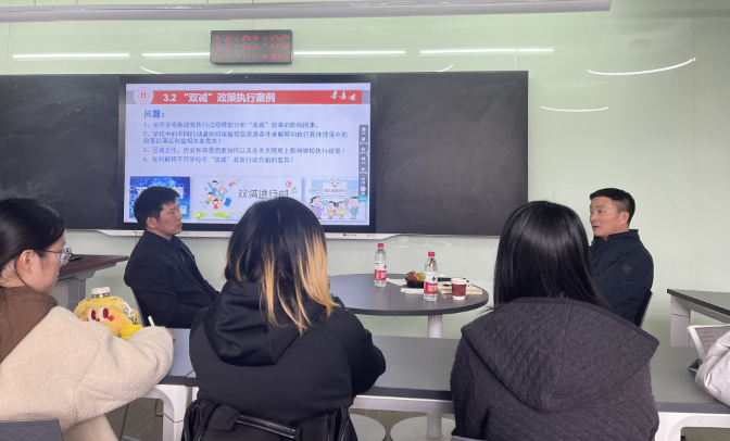 活动伊始,教管课程组的林上洪老师首先明确了课程的教学目标,详细介绍了教育政策执行的相关理论,并通过分析国外学者斯蒂芬·鲍尔等人的“How Schools Do Policy”教育执行研究案例,帮助学生理解教育政策执行的理论和实践。研讨活动中,韩亚斌书记结合自己丰富的学校管理实践经验,从学校的不同行动者角度,详细解读他们如何基于现有资源条件来解释和执行“双减”政策。他还就“双减”政策的执行效果与影响提出了自己的看法,认为应特别关注教师和学生的心理变化,这两个群体在政策执行过程中所面临的压力不容忽视。活动尾声,与会同学们积极向两位老师提出自己的疑惑,并与老师们就政策执行过程中的影响因素进行了深入的互动交流。