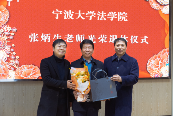 仪式上,孙芬娜书记为张炳生老师颁发了荣休证书;梁开银院长为张炳生老师送去了荣休纪念礼物;青年教师代表乔宜梦为张炳生老师送上代表祝福的鲜花。