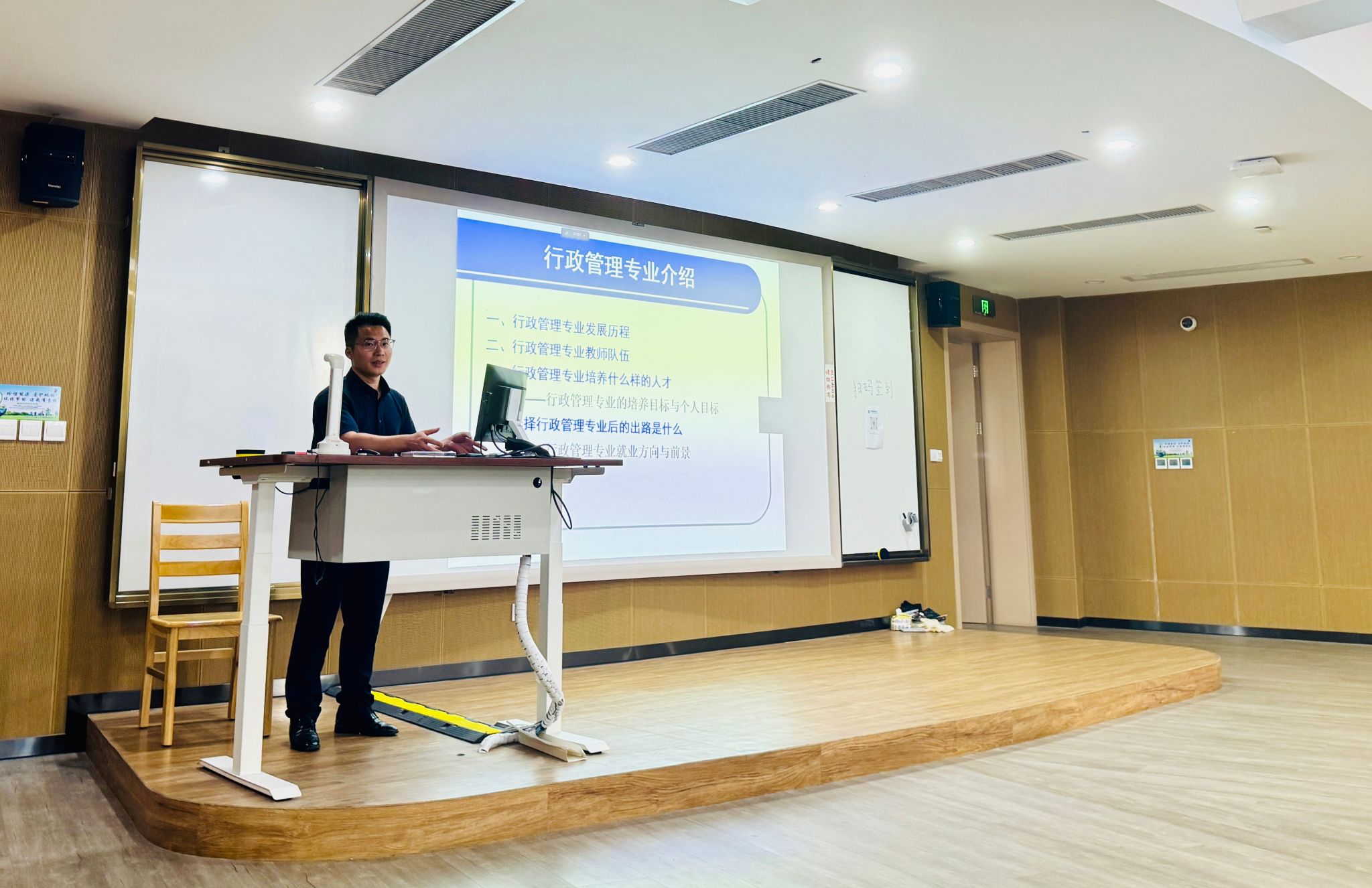 基本情况。随后,法律系系主任谢晓彬着重介绍了涉外法治人才培养的基础优势以及培养目标和总体思路、公管系系主任阳晓伟介绍了行政管理专业发展历程、主要学习内容、就业前景等内容。通过此次活动,同学们对专业有了更加深刻的认识与了解。