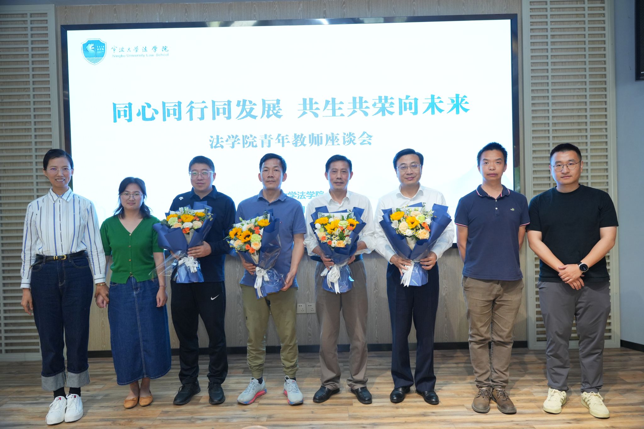 青年教师代表向捐赠方代表和基金倡议人献上了表达感激之情的鲜花,孙芬娜为他们颁发了纪念品。全体与会人员合影留念,会议在温馨有爱的气氛中圆满结束。