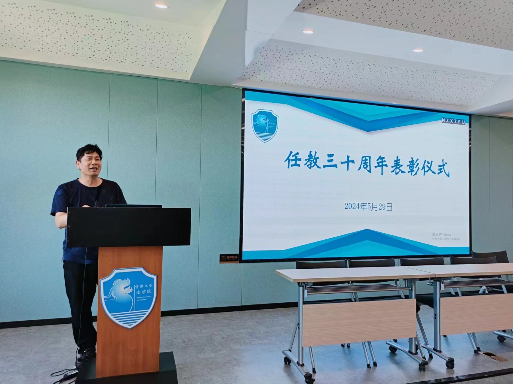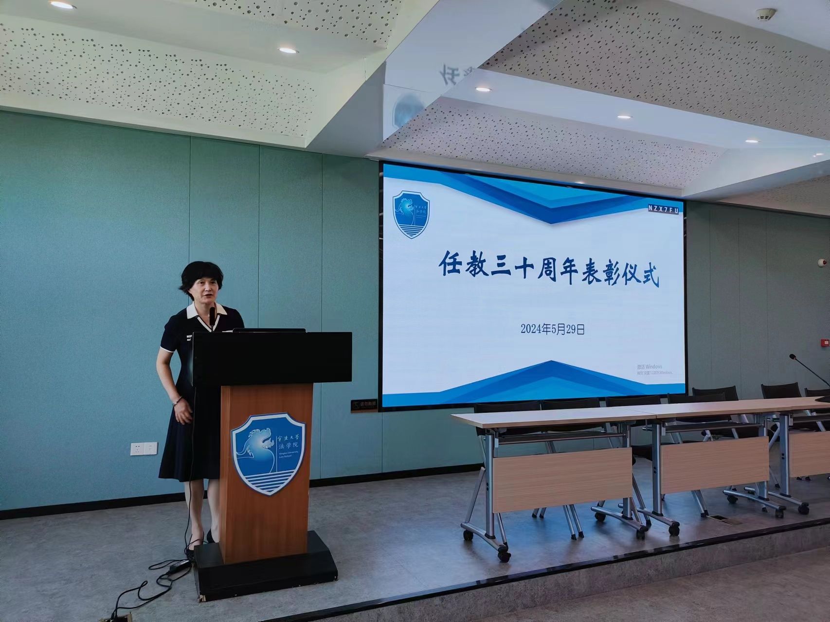 在217会议室举行了教师从教三十年表彰仪式,会议由孙芬娜书记主持。