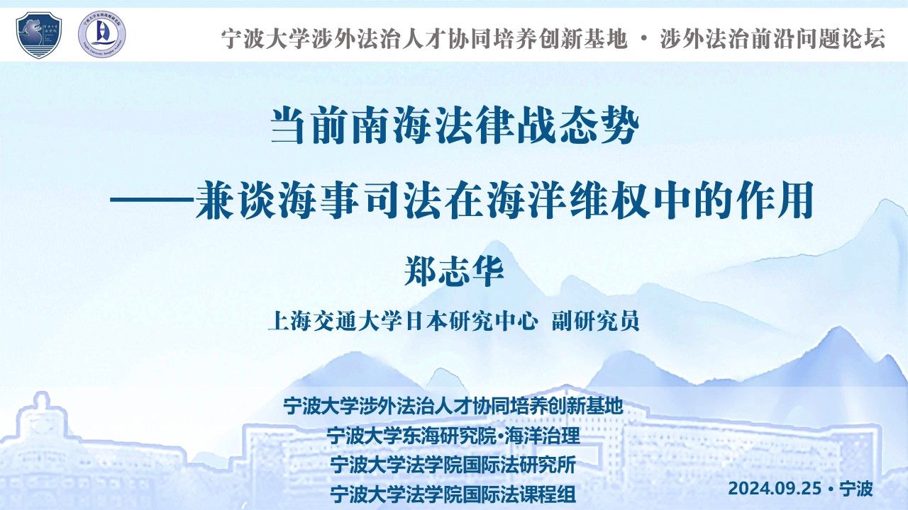 此次论坛的主题是《当前南海法律战态势——兼谈海事司法在海洋维权中的作用》,由上海交通大学郑志华副研究员主讲,由日本无码