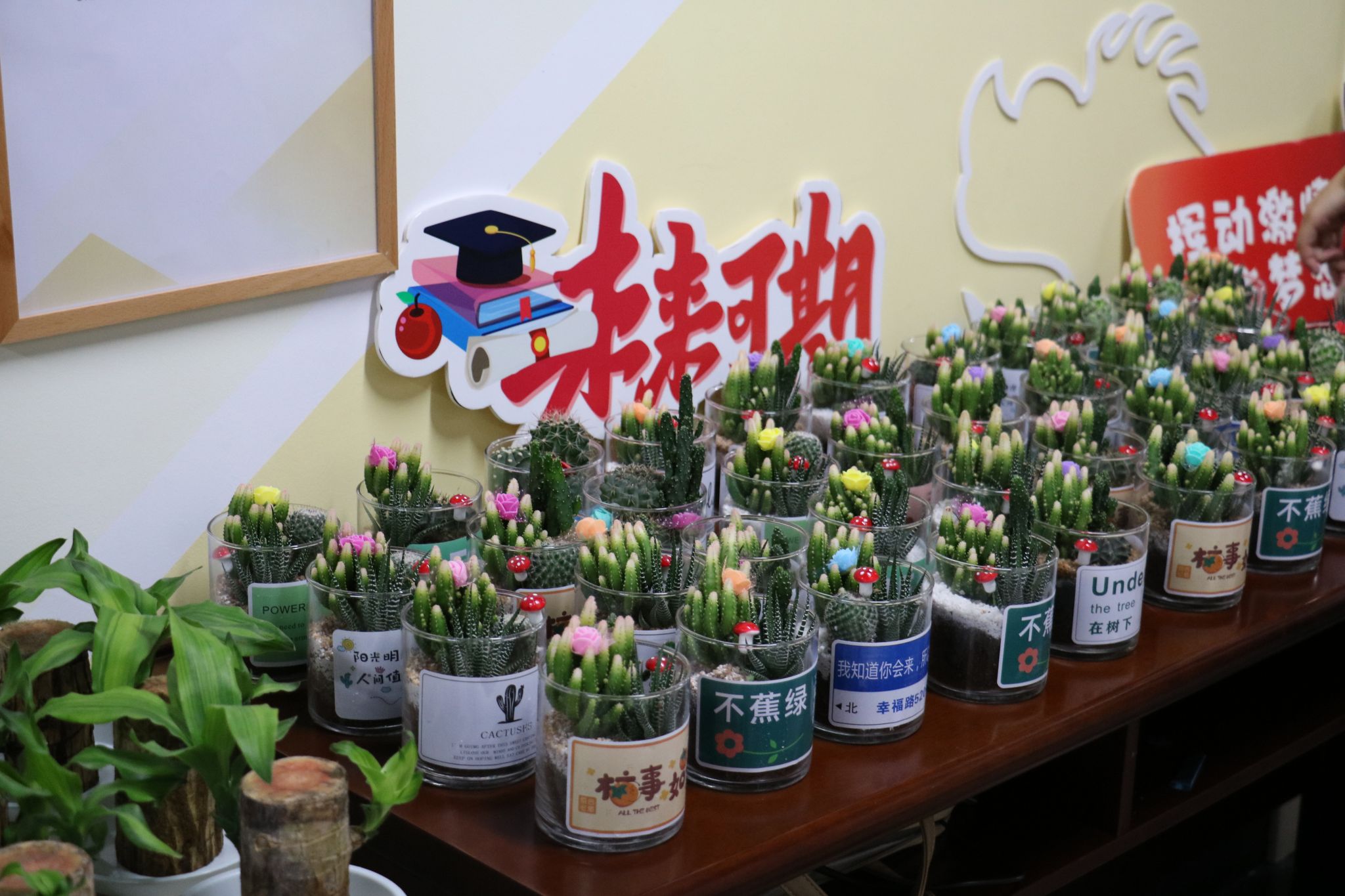 活动伊始,电子屏幕上震撼呈现新中国成立以来的诸多感人瞬间。从泥墙砖瓦崛起为高楼大厦,从绿皮火车发展至全新高铁,从笨重机械迈向人工智能,75 年的奋斗历程创造奇迹,为青年筑就机遇盛世。台下师生深受触动,感触颇深。同学们纷纷立志在宁大努力成长成才,愿以萤烛末光为祖国增添光彩。接着,同学们在下发的明信片上认真书写对祖国的深情祝福。随后,全体人员举起明信片、挥动五星红旗合影留念。活动后,这些满载祝福的明信片将被展示在学院活动墙上。活动最后,学院为到场的每位同学准备了一盆绿植,其中有寓意深刻的多肉和巴西木。多肉象征着祖国如它般顽强坚韧,虽个体微小却能汇聚力量;巴西木寓意着祖国蓬勃发展,如它般挺拔繁茂,充满生机活力。它们共同见证着同学们对祖国的热爱之情。