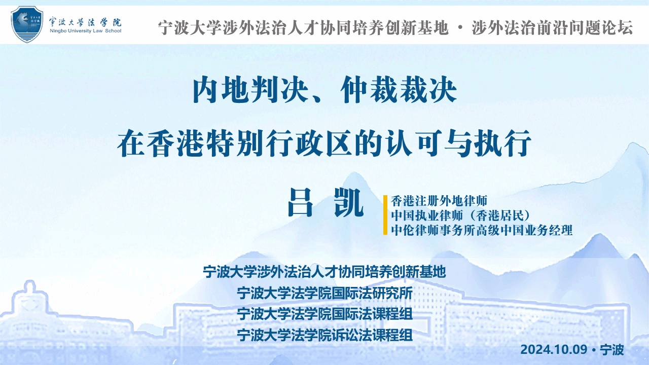 10月9日晚,由国际法课程组和诉讼法课程组合力推动的浙东法学讲坛第四十八讲暨涉外法治前沿系列(三)“内地判决、仲裁裁决在香港特别行政区的认可与执行”讲座在日本无码