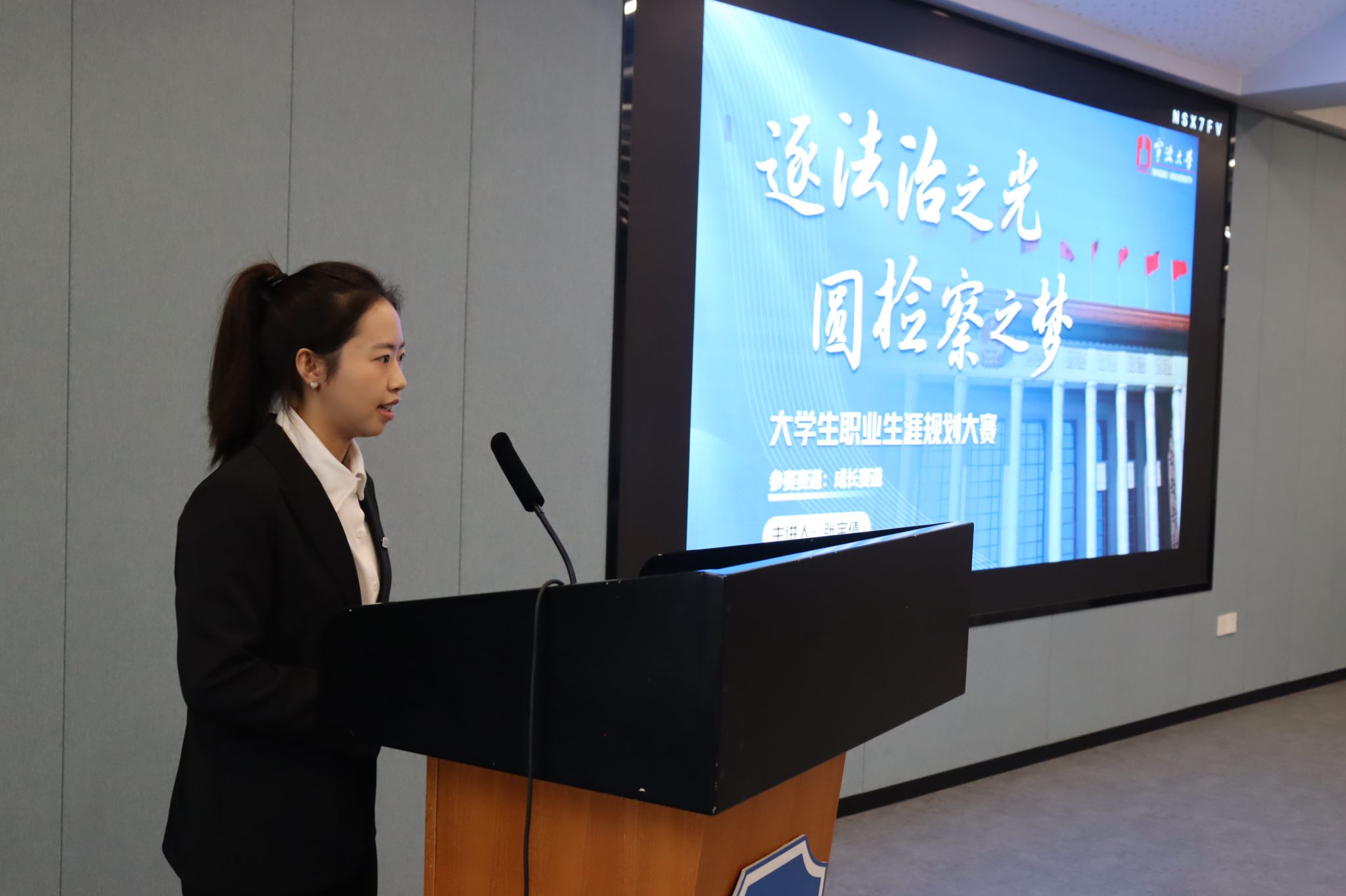 经过前期文本材料评审后,最终有14名参赛选手入围决赛进行展示。比赛现场,选手们展现了思维的敏捷性,既突出了自身规划的逻辑性,又兼顾当下的笃行不辍。影视娱乐产业法务专员、人民检察官、大学生村官、劳动仲裁员、涉外民商事律师......选手们结合自身优势与职业的契合度,做出了多元的职业选择。评委们对选手的文本写作、现场陈述和人职匹配给出自己的见解,帮助选手认识到优势与潜力,明确自己努力的方向。