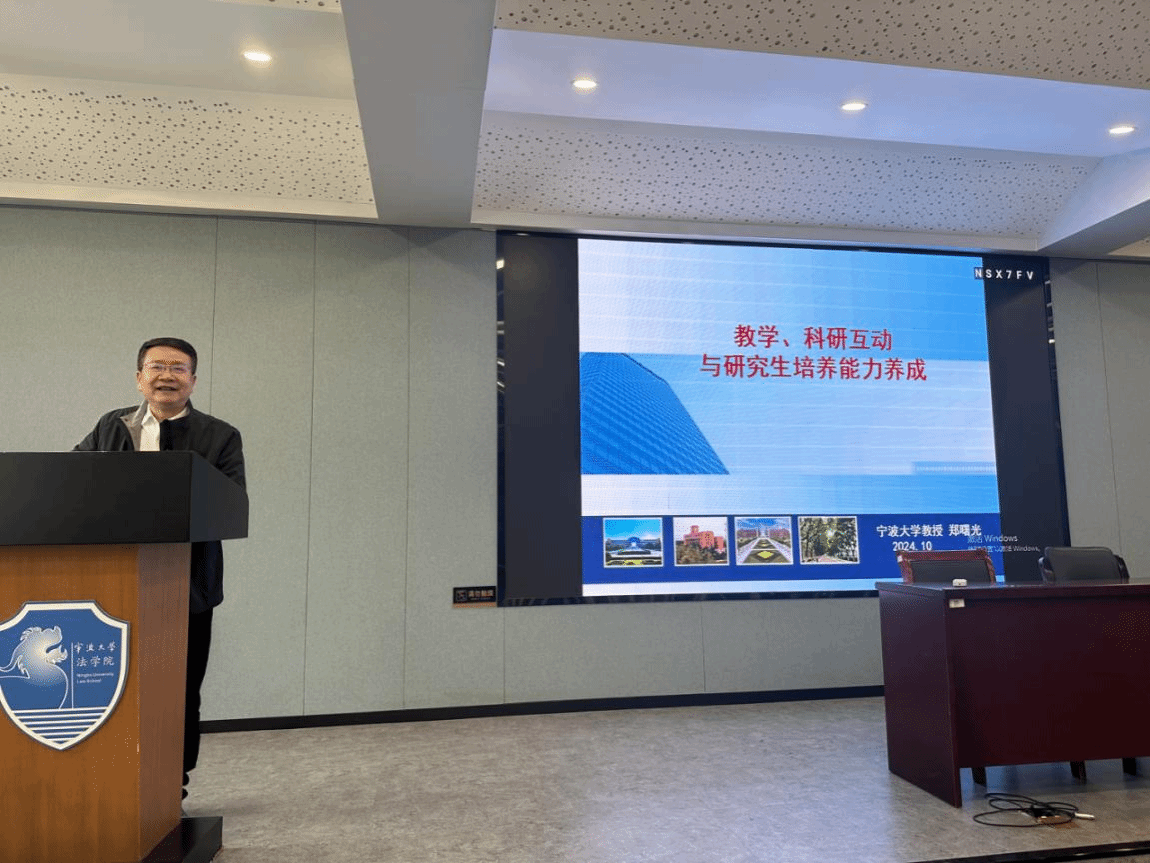 邀请郑曙光教授为全体研究生导师举办了题为《教学科研活动与研究生培养能力养成》的培训讲座。郑曙光教授结合自己多年来指导研究生的心得体会和深刻感悟,围绕研究生导师科研与教学的关系、研究生导师的工作意义、研究生导师指导研究生的方法、研究生的论文选题、研究生导师应具有的品行与操守等,进行了深入浅出的讲解阐释。