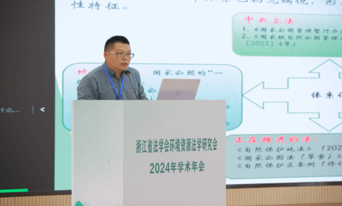 张文松博士在会议主旨演讲环节作了“结构与功能:自然保护地立法体系化”的主旨报告。报告提出,我国自然保护地体系建设呈现“政策系统化+立法体系化”的趋势。现行自然保护地法规体系的类型细化形成的立法价值指向模糊、“类型矩阵”导致立法效能的外溢等问题,亟需通过以国家公园为主体的自然保护地体系予以立法转向。自然保护地体系立法应以生态环境法典编纂和单行法的“双法源”形式,在自然、经济和社会的发展中提供生态空间、生活空间和生产空间的功能。