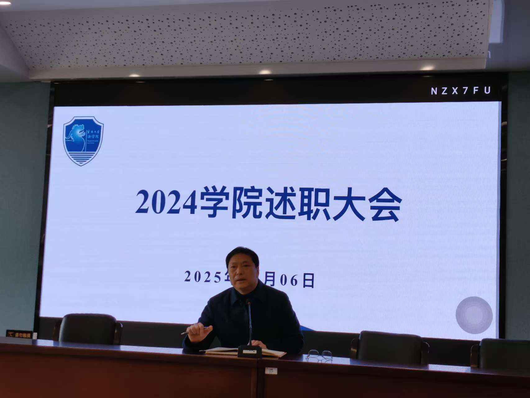 接着,学院党委书记孙芬娜、院长梁开银相继作《个人述职报告》,他们的报告全面涵盖了2024年一年的工作情况、取得的成绩、存在的问题与不足等方面。梁开银院长重点回顾了学院在教学、科研、涉外法治基地建设等方面所取得的成果和下一步的工作举措,肯定了一年来学院基础性和常规性工作的平稳有序,并对未来一年学院的创新性工作进行了展望。