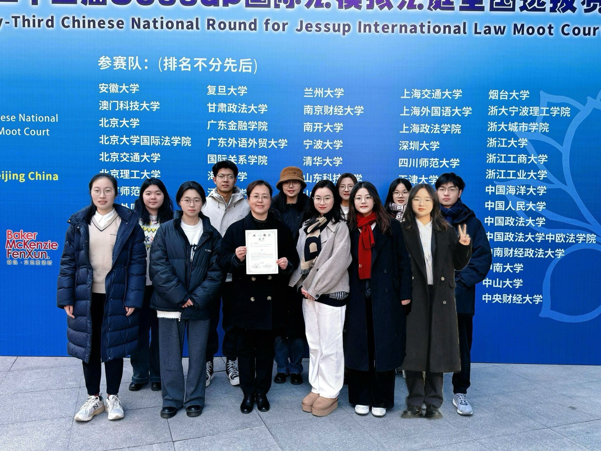2021级金心瑜担任学生教练,2022级姜云航担任领队兼研究员,2022级毛依蕾担任领队兼研究员,2021级魏铭阳担任庭辩员兼研究员,2022级冯诗喆担任庭辩员兼研究员,2023级丁与同担任庭辩员兼研究员,2023级陈杭宇担任庭辩员兼研究员,2022级袁嘉盈担任出庭顾问兼研究员,2023级虞铵琪担任观摩队员兼研究助理,2023级尹思雅担任观摩队员兼研究助理。2022级潘程臣也参与了赛队的部分活动。