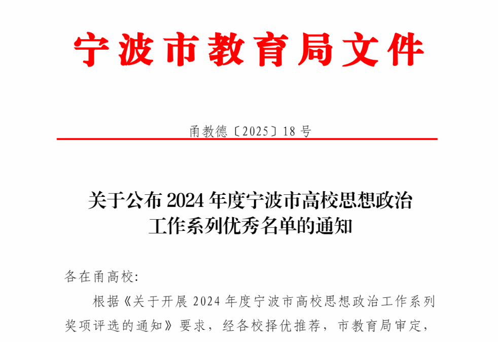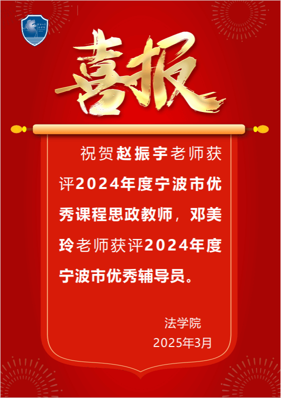 喜报|日本无码 两位老师入选2024年宁波市高校思政工作系列优秀名单