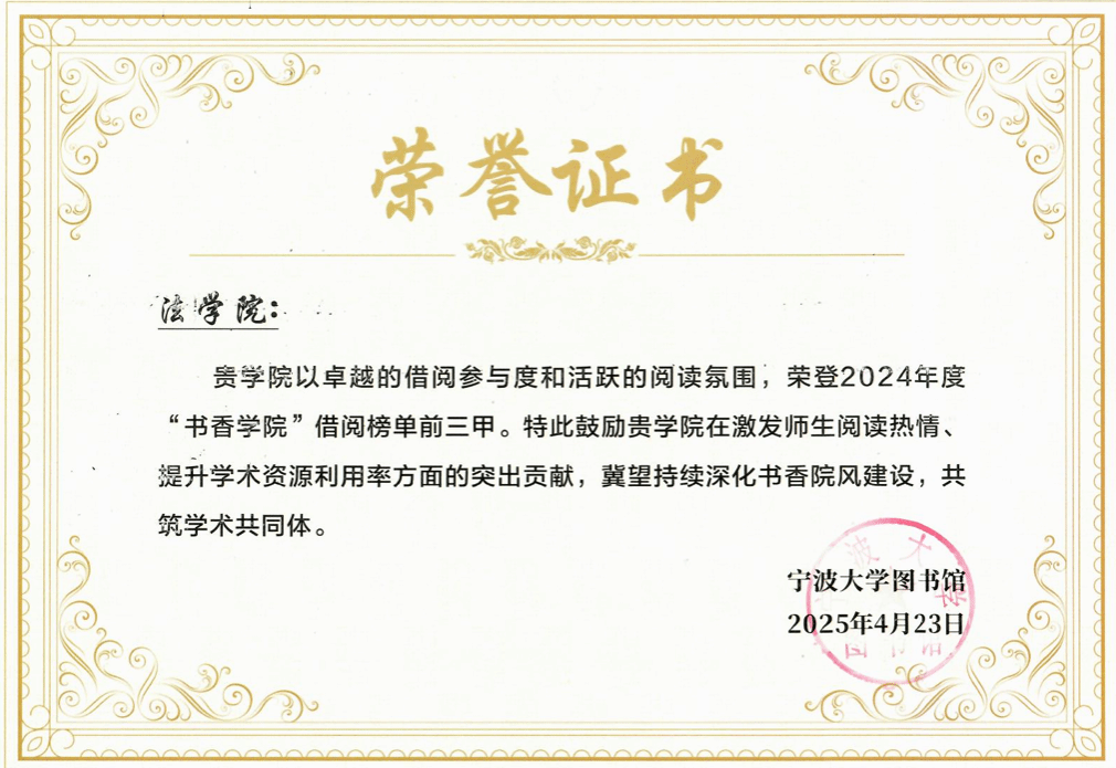 载誉而归,一举荣获 2024 年度 “进馆活跃学院” 榜单前三名以及 “书香学院” 借阅榜单前三甲两项殊荣。