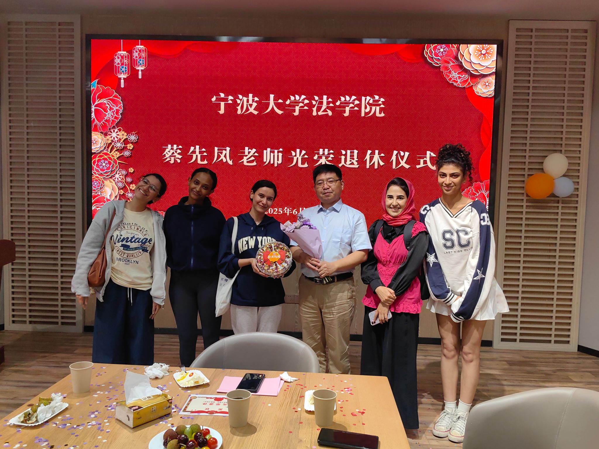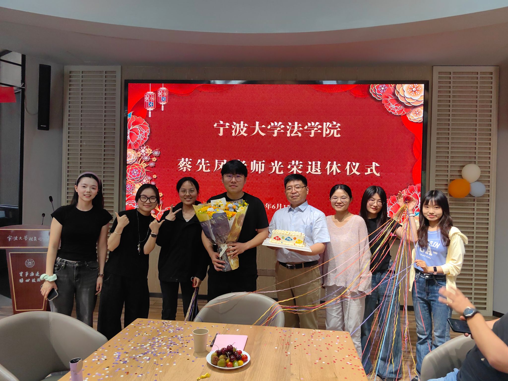 在校友之家为蔡先凤教授举行荣休仪式。学院党委书记孙芬娜、副院长何跃军、副院长王婉娟、工会主席王伟及学院教师代表参加仪式。仪式由党委书记孙芬娜主持。