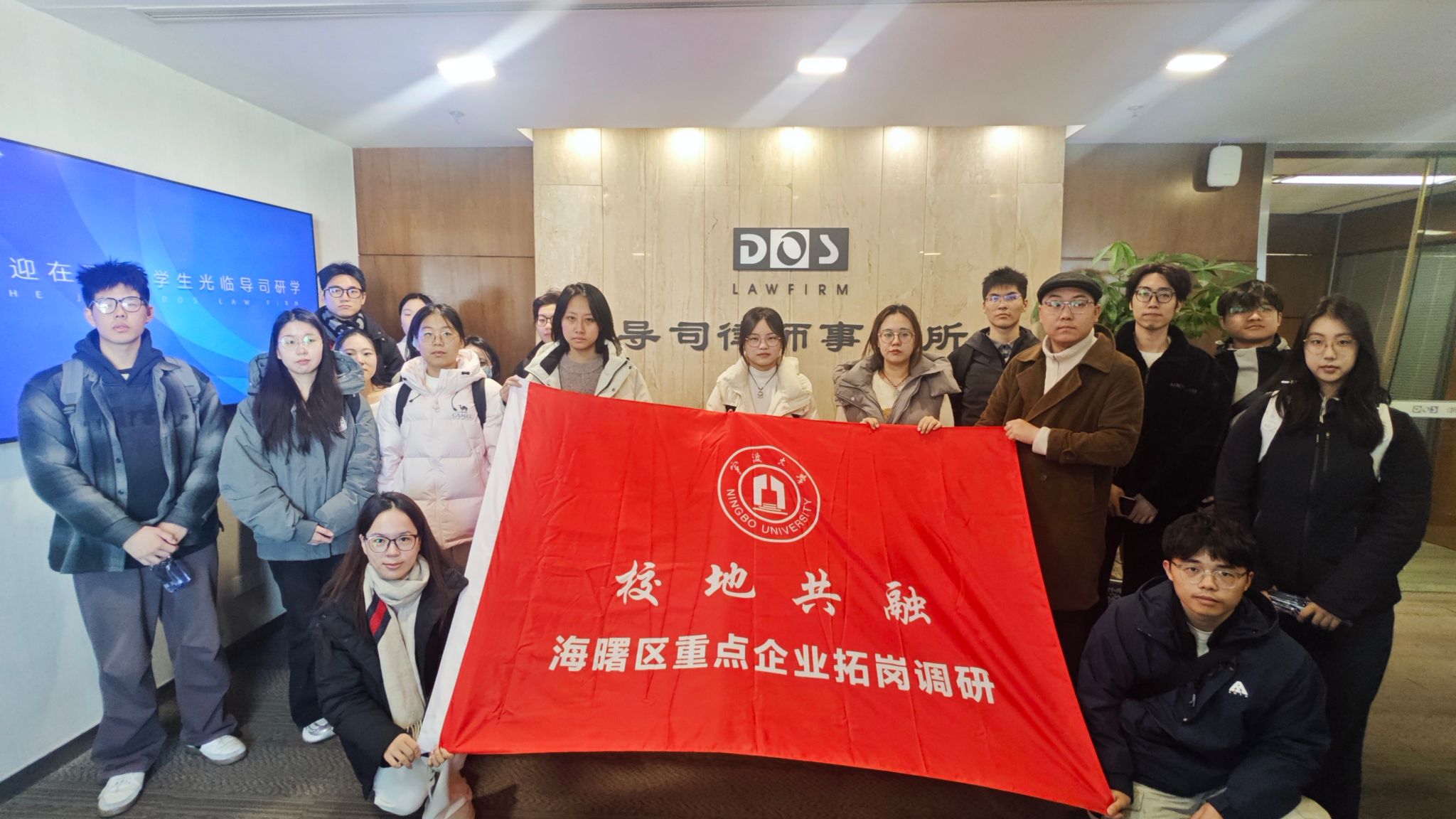 联合海曙区人社局,组织法学专业学生走进海曙区,踏上了一场知行交融的律师事务所研学之旅。研学队伍先后走访位于海曙区的浙江导司律师事务所、浙江金汉律师事务所,并前往梁祝文化公园,展开了一段专业知识与自然人文交织的研学旅程。