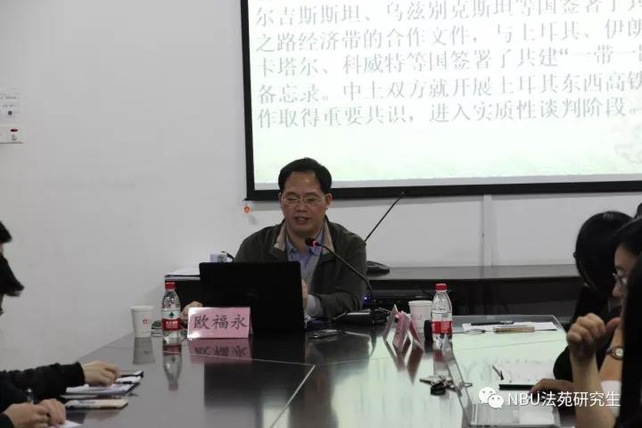 讲座伊始,欧福永教授结合自身的研究和理解,介绍了一带一路建设下的大背景,他提出,在我国经济形势内忧外患的境遇下,再加上全球经贸新格局的必然要求,中国已经成为全球第二大经济体,第一大货物贸易大国、全球最大的吸收外资国和第二大对外贸易国。一带一路是党中央主动应对全球形势深刻变化、统筹国内国际两个大局作出的重大战略决策,也是中国未来参与国际新规则的制定,主动向外寻求合作共赢的机会。截止2016年底,已有100多个国家表达了对共建一带一路倡议的支持和参与,中国与39个国家和国际组织签署了46份共建一带一路的合作协议。