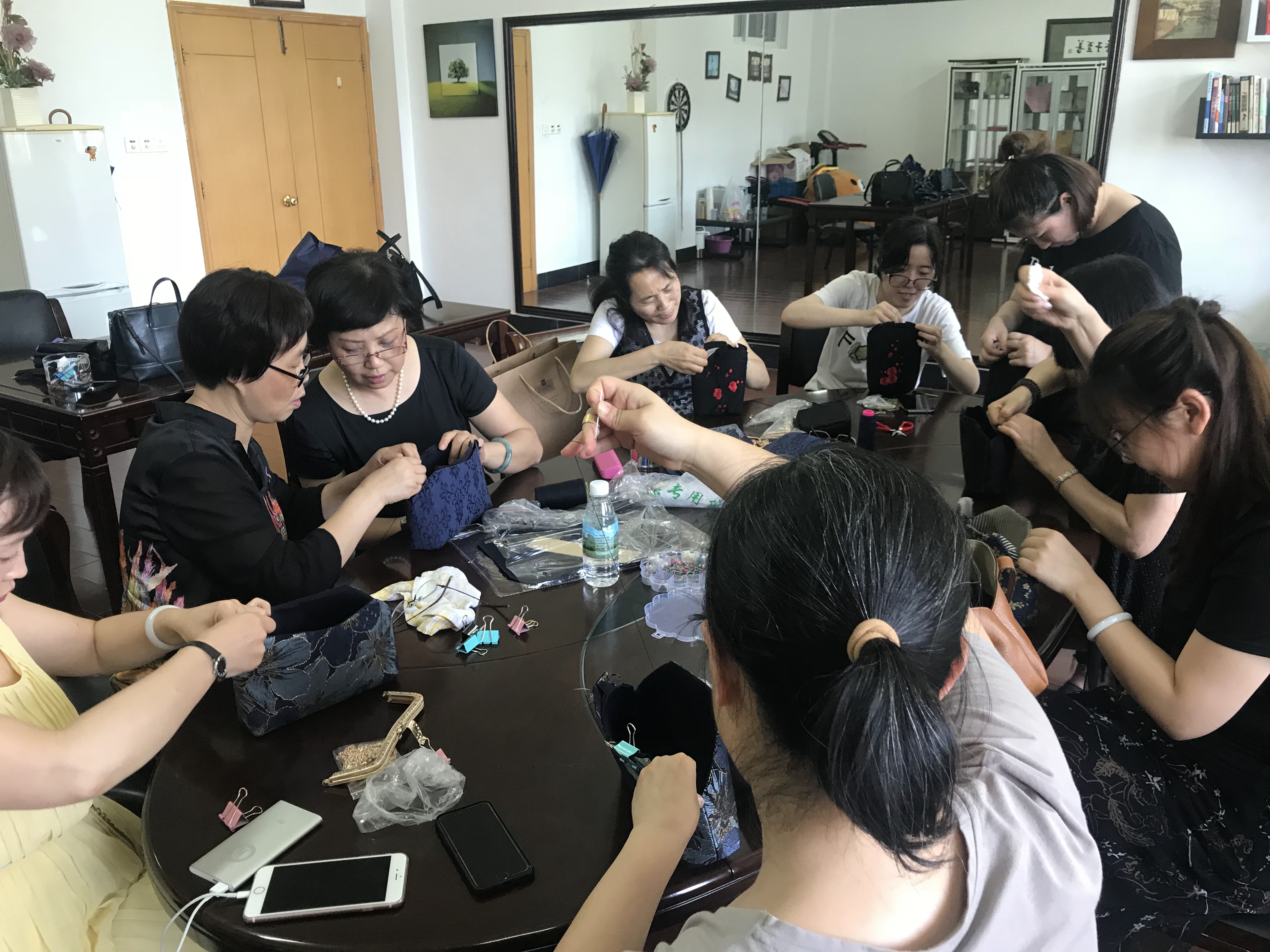 在桂老师的现场讲述和示范下,参与的女教工们一起进行了链条包的制作,活动过程充满欢声笑语,既拉进了彼此的距离,增强了凝聚力,又让大家在欣赏美、鉴别美、创造美的过程中体验快乐。