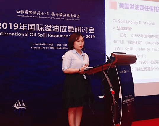 教师王婷婷博士应邀参加了本次会议,在“溢油污染损害索赔”议题阶段就“中美油污基金法律制度比较分析”进行发言,对美国溢油责任信托基金(Oil Spill Liability Trust Fund)涉及的相关联邦立法和司法判例进行了介绍,并从征收和使用角度对我国船舶油污损害赔偿基金和美国溢油责任信托基金进行了对比分析。
