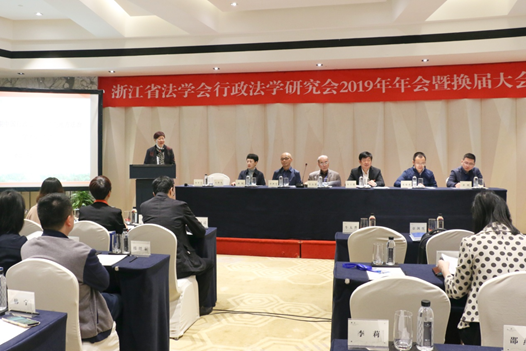会上,省法学会研究部副主任胡铮宣读《浙江省法学会关于浙江省法学会行政法学研究会换届的批复》,省法学会行政法学研究会秘书长黄锴作换届情况说明。随后进行了大会表决。省法学会学术委员会主任牛太升对高度肯定本次会议,认为在转型期背景下,行政法学研究者应更具使命感,同时也对研究会以往的工作高度肯定。