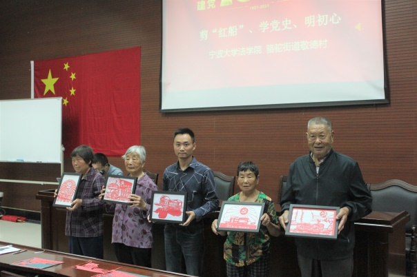 第三支部成员在骆驼街道敬德村开展 “剪红船、学党史、明初心”手工剪纸党员志愿服务活动,与社区老人一同以剪纸的方式重温党史、感受红船精神。
