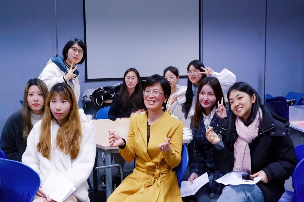 “悦读”沙龙自成立以来,按照每周一次的频率积极开展活动,本学期最后一次活动在教学楼可活动桌椅的教室展开,来自各个院系的约20名同学参加了此次活动。根据学期初的第二课堂团队活动规划,此次活动主题是“用NVC感激方式迎接期末”,学生按照每组四人分成五组开展活动,活动按照“分享上周践行、新章节领读、个案对练、小组讨论、感悟分享”的流程开展,沙龙中师生一起精心布置读书场地,并用合影记录互相陪伴共同成长的温馨岁月,活动形式践行了“平等连接、临在体验”的沙龙主旨,每个同学都有参与感和获得感。