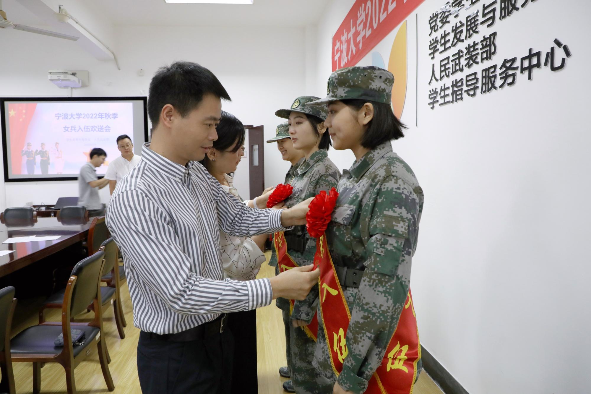 2022年秋季女兵入伍欢送会在黄庆苗楼406会议室举行。此次共有3名宁大学子光荣入伍,其中包括日本无码