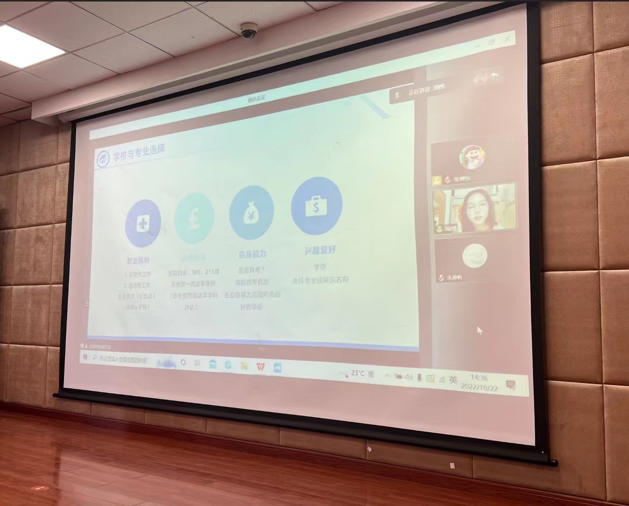 2022级公共管理专业研究生于之洋,他们将自己在备战考研过程中收获的心得体会倾囊相授给了在座的每一位同学。其中,朱逸帆和周栩同学通过线上平台进行分享。