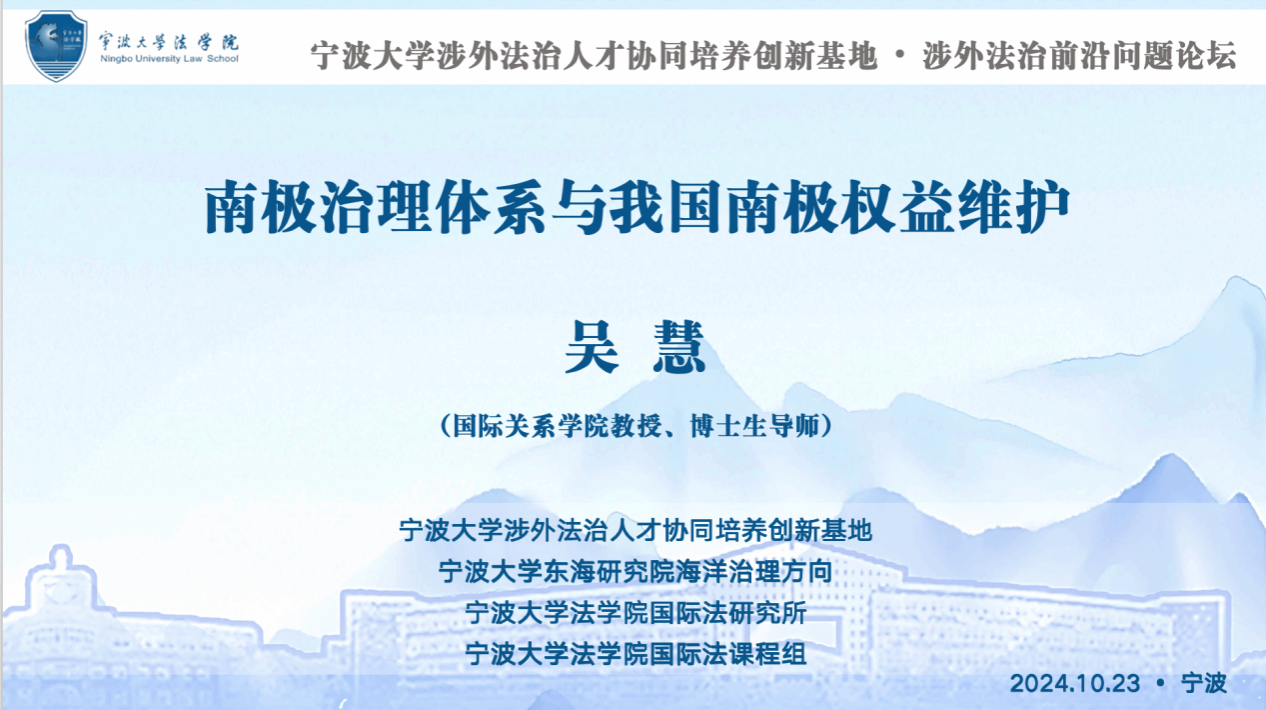 2024年10月23日晚,浙东法学讲坛第五十讲暨涉外法治前沿系列(四)“南极治理体系与我国南极权益维护”讲座在日本无码