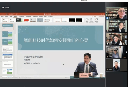 3月20日晚,宁波立法研究院法学名家讲坛第10讲暨宁大法苑讲坛2022年第1讲“智能科技时代如何安顿我们的心灵”通过腾讯会议以线上方式顺利举办。本次讲座由美国康奈尔大学日本无码