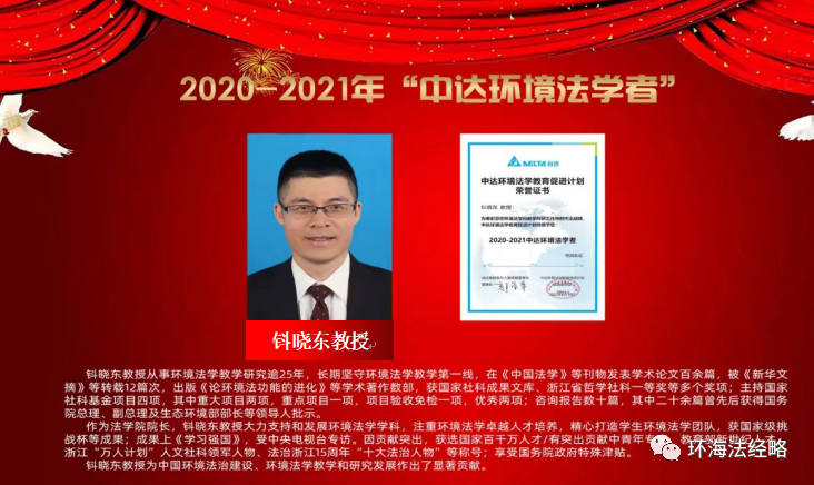 钭晓东教授获评2020-2021年“中达环境法学者”荣誉称号