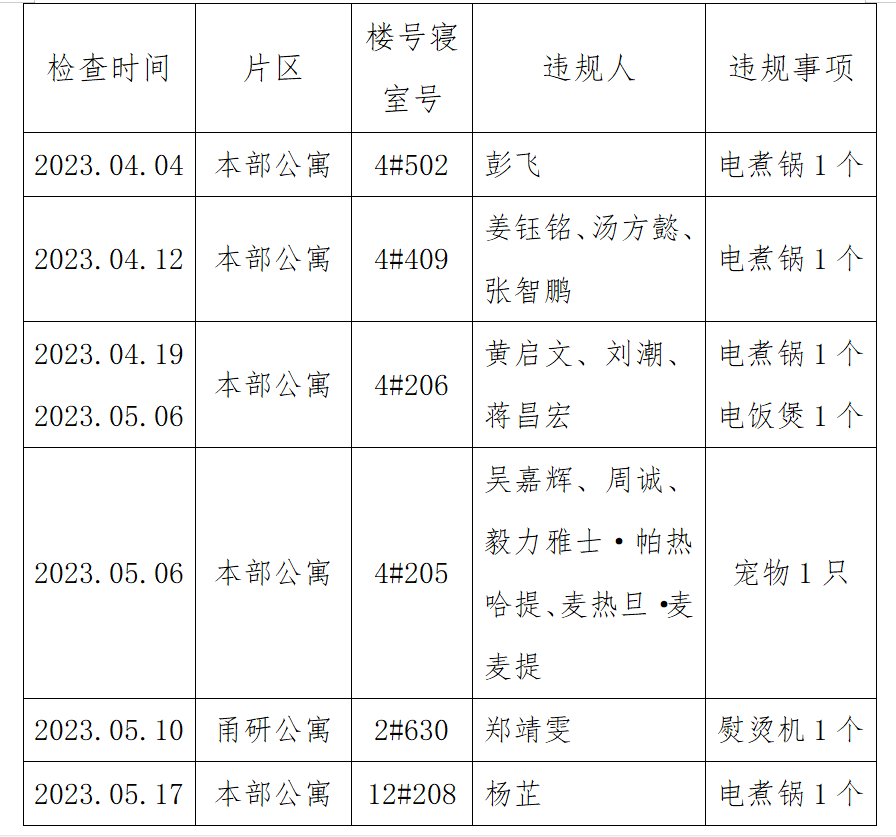 学生违纪处分办法(宁大政[2017]114号)》第二条、第四条相关规定,予以院内通报批评。通报名单如下: