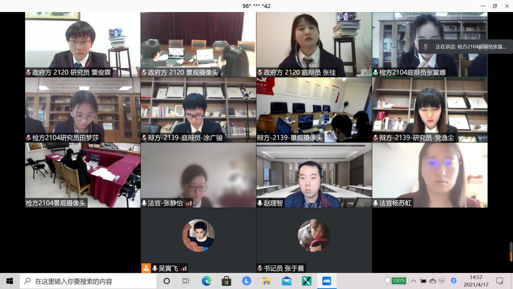 为参加本次比赛,法学院于去年12月就启动了赛事的选拔和筹备工作。高强度的赛事备战和高难度的竞争挑战,让参赛的我校学子收获满满。参赛队员克服学业重、语言难等障碍,进行高效团结的“云备赛”。从线上会议论坛到观点学术研讨,从思路框架构建到文书写作修改,在教练和指导老师的指导下,参赛同学合理制定竞赛计划和分工合作,有条不紊的进行赛前准备,专心投入比赛。从2020年12月试题公布到今年4月17日、18日庭辩赛,4个多月的时间,队员们对案件和相关材料进行认真细致分析,牺牲课余时间和假期查阅大量中英文文献资料,有步骤地学习国际刑法知识,分析国际刑事法院和特别法庭的现实案例,多次修改、打磨和完善文书内容。