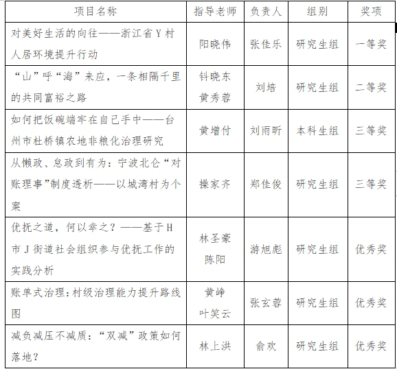 根据《关于举办宁波大学第五届公共管理案例大赛暨浙江省第五届大学生公共管理案例大赛选拔赛的通知》等文件的相关要求,拟推荐我校《对美好生活的向往——浙江省Y村人居环境提升行动》等7件作品作为省赛参赛作品。现将相关作品信息进行公示,公示期内,任何单位或个人对公示结果持有异议,可通过书面形式向法学院公共管理案例大赛工作小组办公室进行实名反映。
