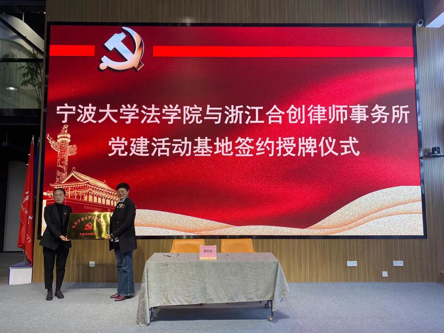 12月11日,宁波大学法学院与浙江合创律师事务所党建活动基地签约授牌仪式举行。基地从组织建设互促、党员干部互动、党建载体互用、共谋双方发展出发,提高基层党组织的创造力、凝聚力和战斗力,形成互带互动、优势互补、资源共享、共同发展的基层党建工作新格局。