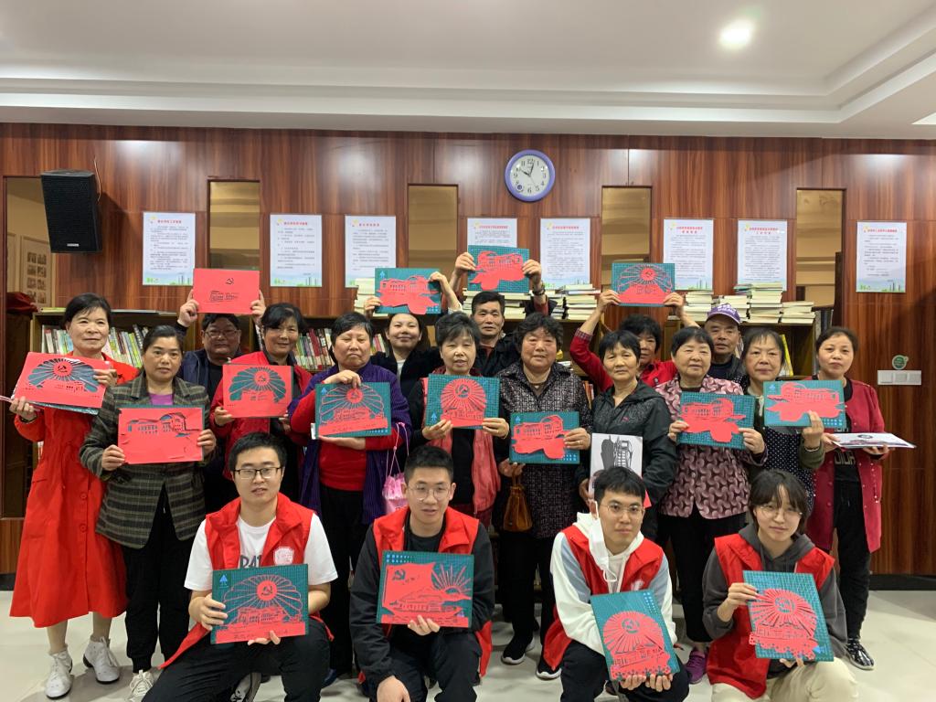 紧接着,党员义工带领社区居民学习传统剪纸技艺和操作方法。一把刻刀、一张红纸、一双巧手,一幅幅栩栩如生的“红船精神”剪纸作品讲述着红色故事,带领大家游走于红色历史与传统文化的广阔天地,进一步发扬“红船精神”,学党史,悟思想,根植家国情怀。随后,大家一同观看了建党一百周年短片《百年恰是风华正茂》,弘扬革命精神,传承红色基因。