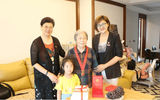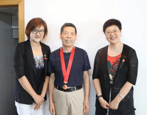 6月25日上午进行第一批颁发工作。法学院党委书记李学兰一行,首先登门拜访了3位离退休老党员雷良渊老师、陈炳水老师、吴才根老师,为他们佩戴纪念章,赠送党史系列经典读物,并代表学院党委向老党员致以崇高敬意和诚挚慰问。
