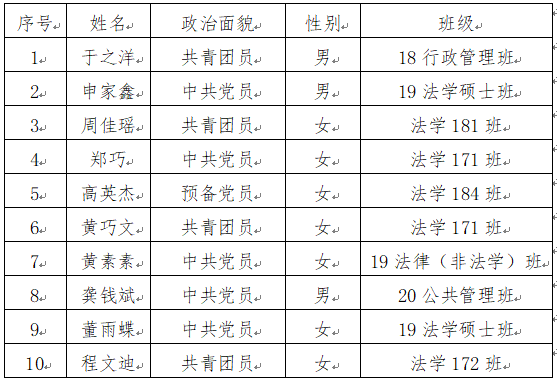 经个人申请、班级推荐、学工办初审,学院学生工作领导小组讨论评议,评选产生了第三届宁波大学法学院学生“卓越”奖章获奖学生(共10名)。