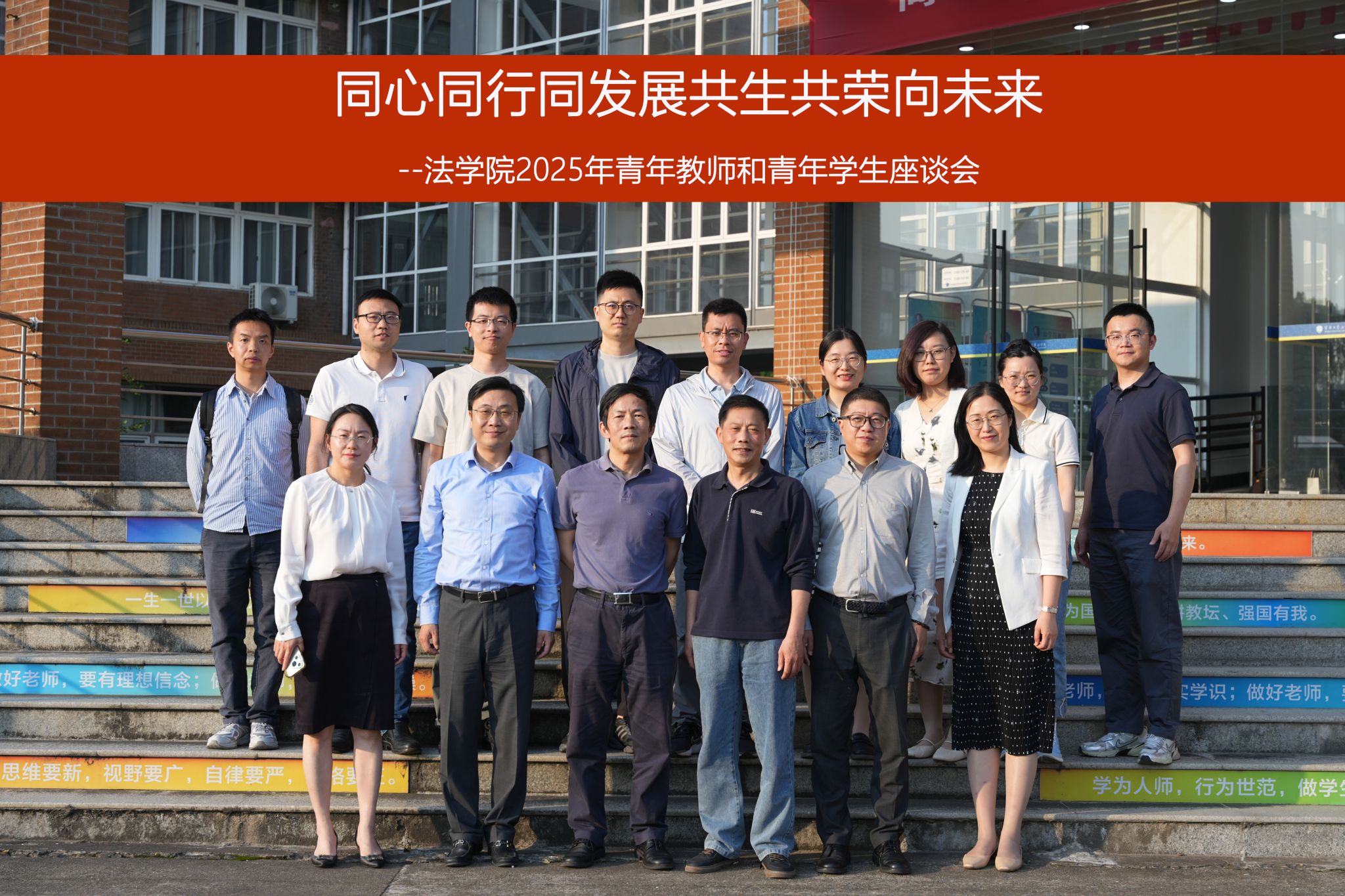 此次交流会生动诠释了法学院“共生共荣”理念,汇聚校友情与师生谊,为青年教师成长注入温暖力量,擘画学院未来发展蓝图。会议在温馨氛围中结束,青年教师代表向捐赠方和倡议人赠送纪念品,与会人员合影留念。