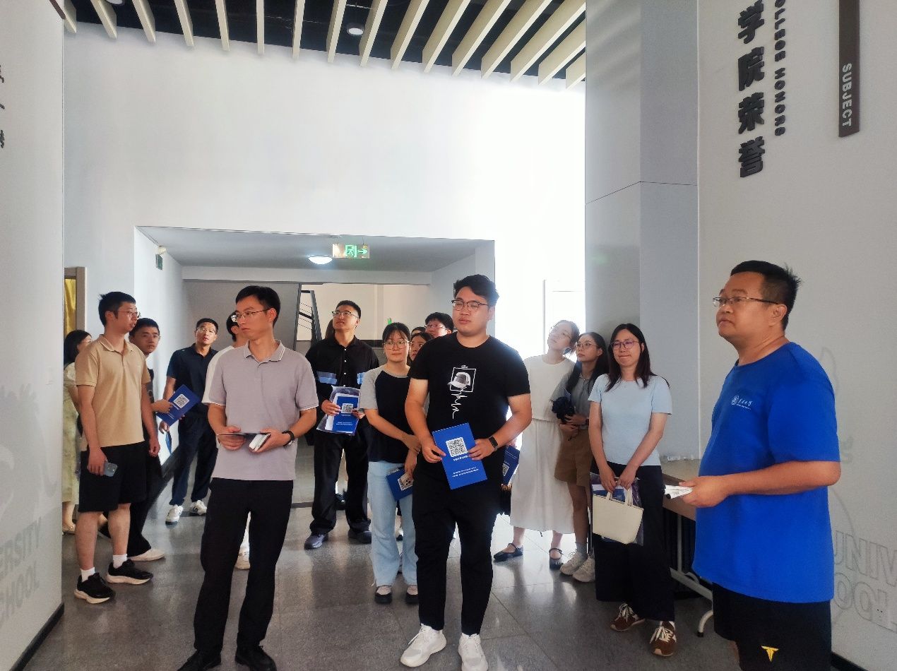 如果说教室里的交流是思想的碰撞,那么班主任带领的“学院探索之旅”则是直观的“专业启蒙”。一楼大厅的“荣誉墙”上,“全国公共管理案例大赛一等奖”“浙江省高校智库优秀成果奖”“基层治理创新示范基地”等证书与奖杯静静陈列,每一枚背后都是宁大公管人服务社会的足迹,诉说着“理论与实践共生”的学术传统,沉浸式“探院”:在“荣誉墙”与“实验室”里读懂“公管何为”。让新生们直观感受到“学院在赋能治理方面的成就”。