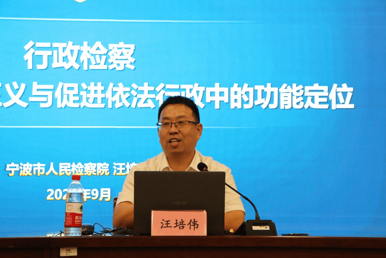 9月16日晚18:00,宁波大学法学院研究生法治实务课程系列讲座《行政检察在守护法律公平正义与促进依法行政中的功能定位》在法学院217室顺利举办。本期讲座由宁波市人民检察院案件管理办公室主任、三级高级检察官汪培伟主讲,法学院副院长何跃军教授主持。法学院2025级法律硕士全体同学聆听了本次讲座。
