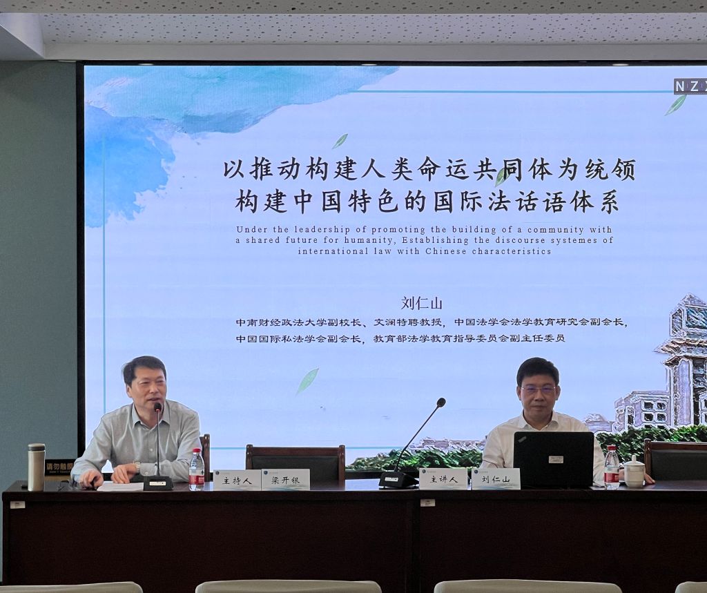 10月31日下午,浙东法学讲坛第三十五讲:“以推动构建人类命运共同体为统领,构建中国特色的国际法话语体系”在法学院217报告厅顺利举办。本期讲座由中南财经政法大学副校长、教授、博士生导师刘仁山主讲,宁波大学法学院院长梁开银主持,法学院九十余名学生聆听了本次讲座。