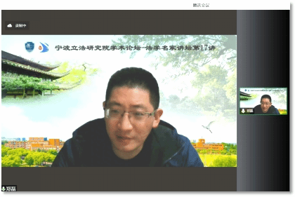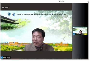 4月19日晚,宁波立法研究院法学名家讲坛第17讲暨宁大法苑讲坛2022年第6讲《什么是通报批评》讲座通过腾讯会议以线上方式展开。本次讲座由上海交通大学凯原法学院教授、博士生导师朱芒主讲,宁波大学法学院教授、院长梁开银主持,郑州大学法学院副教授郑磊、宁波大学法学院教授朱全宝、宁波大学法学院副教授夏雨参会与谈。来自各高校师生及实务界人士300余人参与聆听了本次讲座。